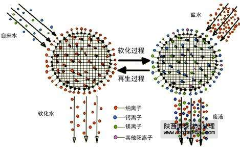 當(dāng)樹脂吸收一定量的鈣鎂離子之后,就必須進(jìn)行再生,再生過程就是用鹽箱中的食鹽水沖洗樹脂層,把樹脂上的硬度離子在置換出來,隨再生廢液排出罐外,樹脂就又恢復(fù)了軟化交換功能。