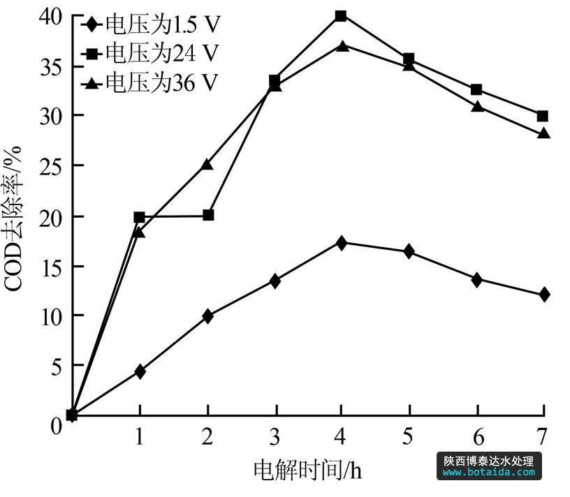 2.4 電解電壓對COD去除效果的影響