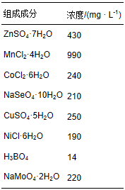 CANON工藝的啟動階段采用人工模擬高氨氮廢水.啟動完成后,利用某石化公司石油裂化催化劑生產(chǎn)廢水對微生物進行馴化,廢水日產(chǎn)量約為15.6×103 m3.模擬高氨氮廢水的水質如表 1所示(于英翠等,2012),微量元素成分見表 2.