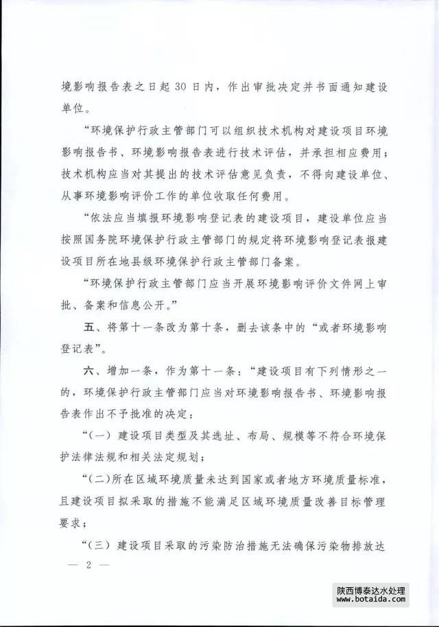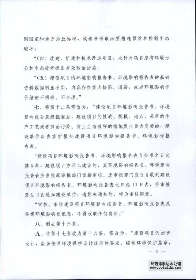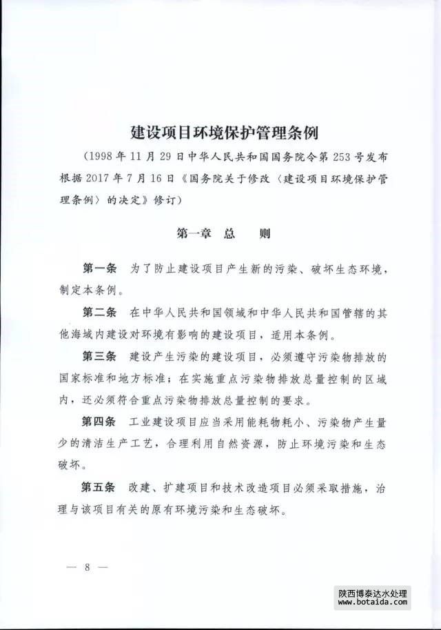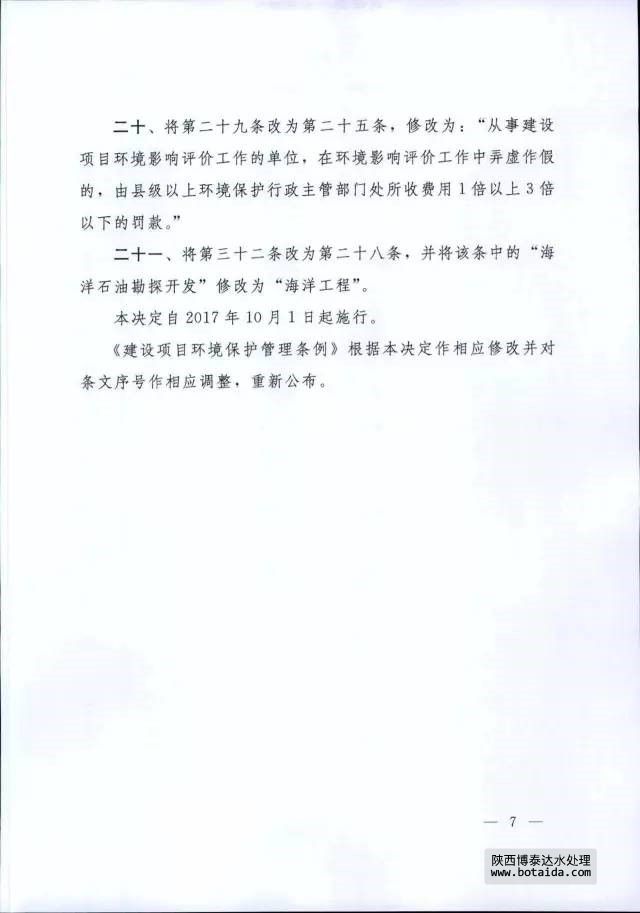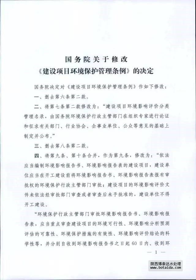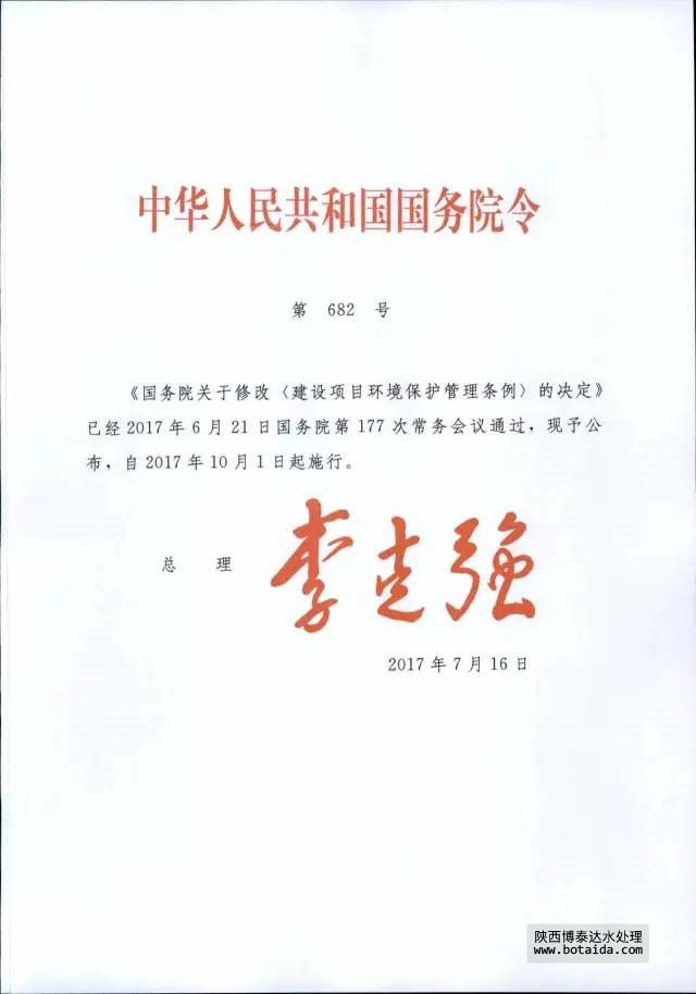 7月16日,國務(wù)院以國務(wù)院第682號令公布了《國務(wù)院關(guān)于修改〈建設(shè)項目環(huán)境保護管理條例〉的決定》,自2017年10月1日起施行。