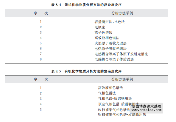 ● 如果要將某個(gè)實(shí)驗(yàn)室提交的分析結(jié)果與其他實(shí)驗(yàn)室的結(jié)果用數(shù)字表示的標(biāo)準(zhǔn)進(jìn)行比 較,那么它們最好不帶有任何系統(tǒng)誤差。盡管實(shí)際上這是不可能的,但每個(gè)實(shí)驗(yàn)室應(yīng)選擇系 統(tǒng)誤差已充分評(píng)價(jià)并處于可接受的低水平的方法。 分析方法根據(jù)其技術(shù)復(fù)雜程度的定性排序如表8.4(對(duì)于無(wú)機(jī)化學(xué)物質(zhì))和表8.5所示(對(duì)于有機(jī)化學(xué)物質(zhì))。表中分組的化學(xué)物質(zhì)的分析方法差別很大,次序越高,方法所需的設(shè) 備越高級(jí)或操作越復(fù)雜。通常,越高的次序也意味著越高的總經(jīng)濟(jì)成本。