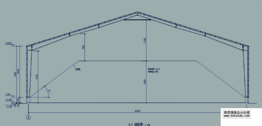 輔料堆棚項(xiàng)目長(zhǎng)約 40米,寬 24 米,高 9.6 米的料倉。沿中心點(diǎn)兩側(cè)做兩條約 40 米長(zhǎng)的噴霧降塵點(diǎn),共計(jì)約 80 米。