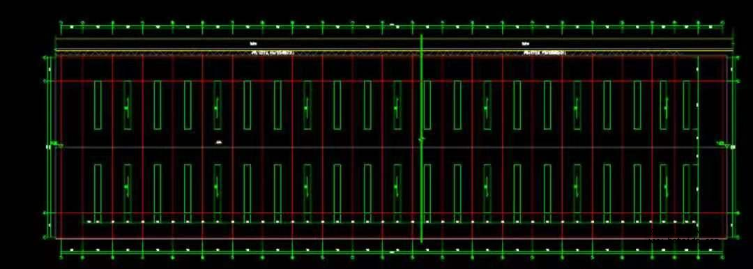 舊熟料堆棚長(zhǎng)約 165.5,寬 45 米,高 12 米的料倉。沿兩邊立柱上方跨梁噴設(shè),跨梁共計(jì)數(shù)量 24 個(gè)、鋪設(shè) 23 個(gè),共計(jì)長(zhǎng)度約 1035 米。