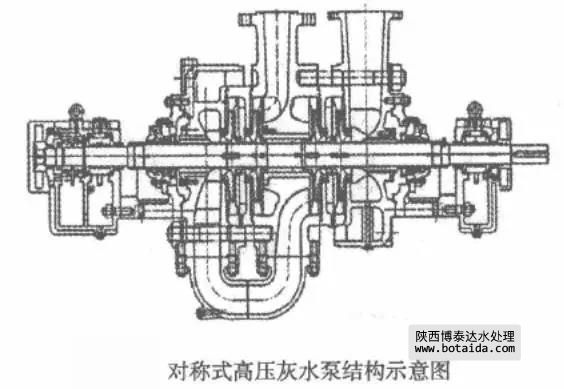 (4)高壓灰水泵的作用是將灰水槽中的灰水經(jīng)閃蒸換熱器送到碳洗滌塔。該泵流量大、揚程高,介質(zhì)中含有一定量的灰渣,采用多級對稱式離心泵為宜,如圖8所示。