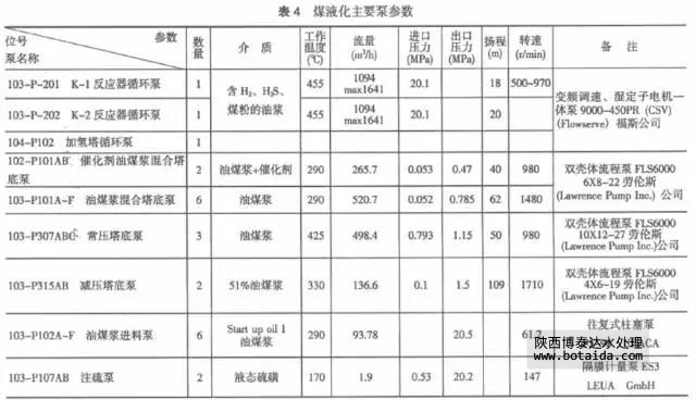 表4列出了煤液化主要泵參數(shù),這些泵當(dāng)時都是從國外進口的,現(xiàn)在有些已能國產(chǎn),但還是有不少位號的泵需要通過技術(shù)攻關(guān)才能實現(xiàn)國產(chǎn)化。