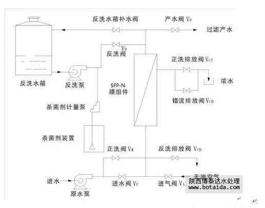 一般情況下,反洗和氣擦洗系統(tǒng)對于SFP-N超濾是必需的;通常,還配備一個殺菌劑加藥系統(tǒng)以控制微生物等繁殖對超濾膜的影響;而分散化學(xué)清洗系統(tǒng)則在水質(zhì)較差時配備。