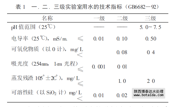 國家標(biāo)準(zhǔn)規(guī)定有分析實驗室用水的技術(shù)指標(biāo)。分析實驗室用水的技術(shù)指標(biāo)見下表,