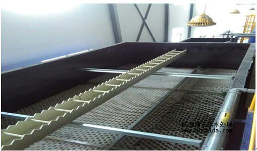 水解酸化池內(nèi)部可以不設(shè)曝氣裝置,控制停留時間再水解、酸化階段,不出現(xiàn)厭氧產(chǎn)氣階段,前兩個階段的COD去除率不是很高,因?yàn)樗哪康闹皇菍⒋蠓肿拥淖兂尚》肿佑袡C(jī)物,一般去除率在20%左右,產(chǎn)氣階段的COD去除率一般在40%左右,但這是產(chǎn)生的硫化氫氣體要進(jìn)行除臭處理,且達(dá)到產(chǎn)氣階段的停留時間要較前兩階段長,也就是要出現(xiàn)厭氧狀態(tài)。缺缺氧池內(nèi)要設(shè)置曝氣裝置,控制溶解氧在0.3-0.8mg/l,利用兼氧微生物及生物膜來降解廢水中的有機(jī)物,接觸氧化池內(nèi)的曝氣器要慎重選擇,既要保證供氧量,又要確保有利于生物膜的脫落、更新。一般不選用微孔曝氣器作為池底的曝氣器。