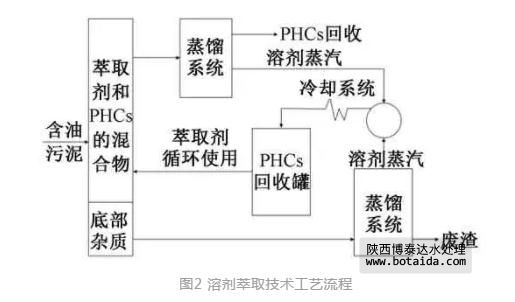 溶劑萃取法選擇一種有機(jī)溶劑作為萃取劑,利用“相似相溶”原理,將PHCs溶解并使其與含油污泥中其他組分分離,然后將混合物蒸餾以分離出PHCs和萃取劑,比離心分離法更適用于高含油率油泥、老化油泥等一些處理難度大、回收利用價值高的處理單元。